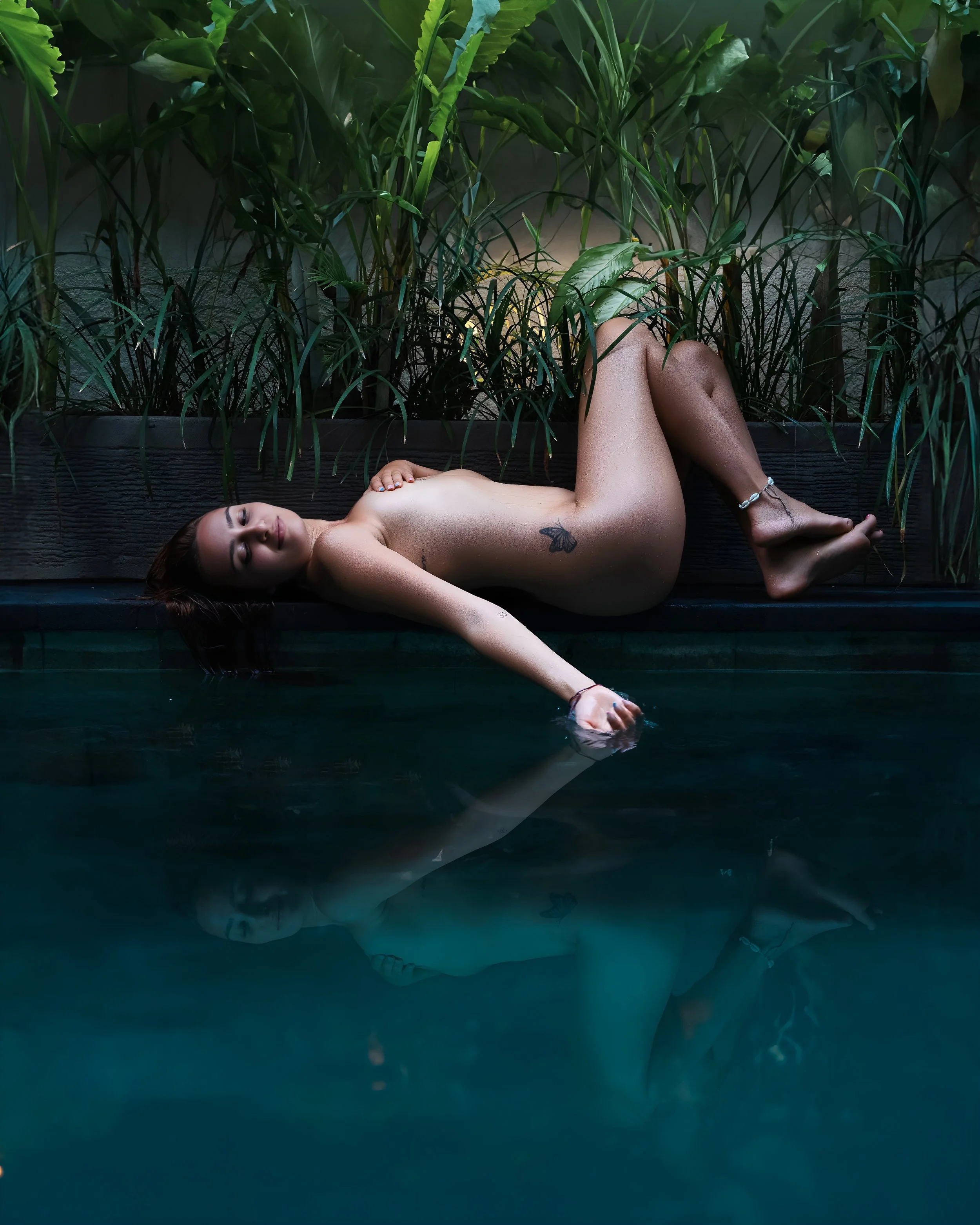 This ethereal photoshoot celebrates the essence of freedom, self-acceptance, and beauty in its purest form. Set in a serene, lush poolside setting in Bali, Indonesia, each image highlights the interplay of light, water, and the human form, capturing the power of embracing one’s femininity and being comfortable in your own skin. The reflections and natural surroundings evoke a sense of harmony and timelessness, serving as a tribute to authenticity, strength, and the boundless spirit of being a "Child of the Universe."